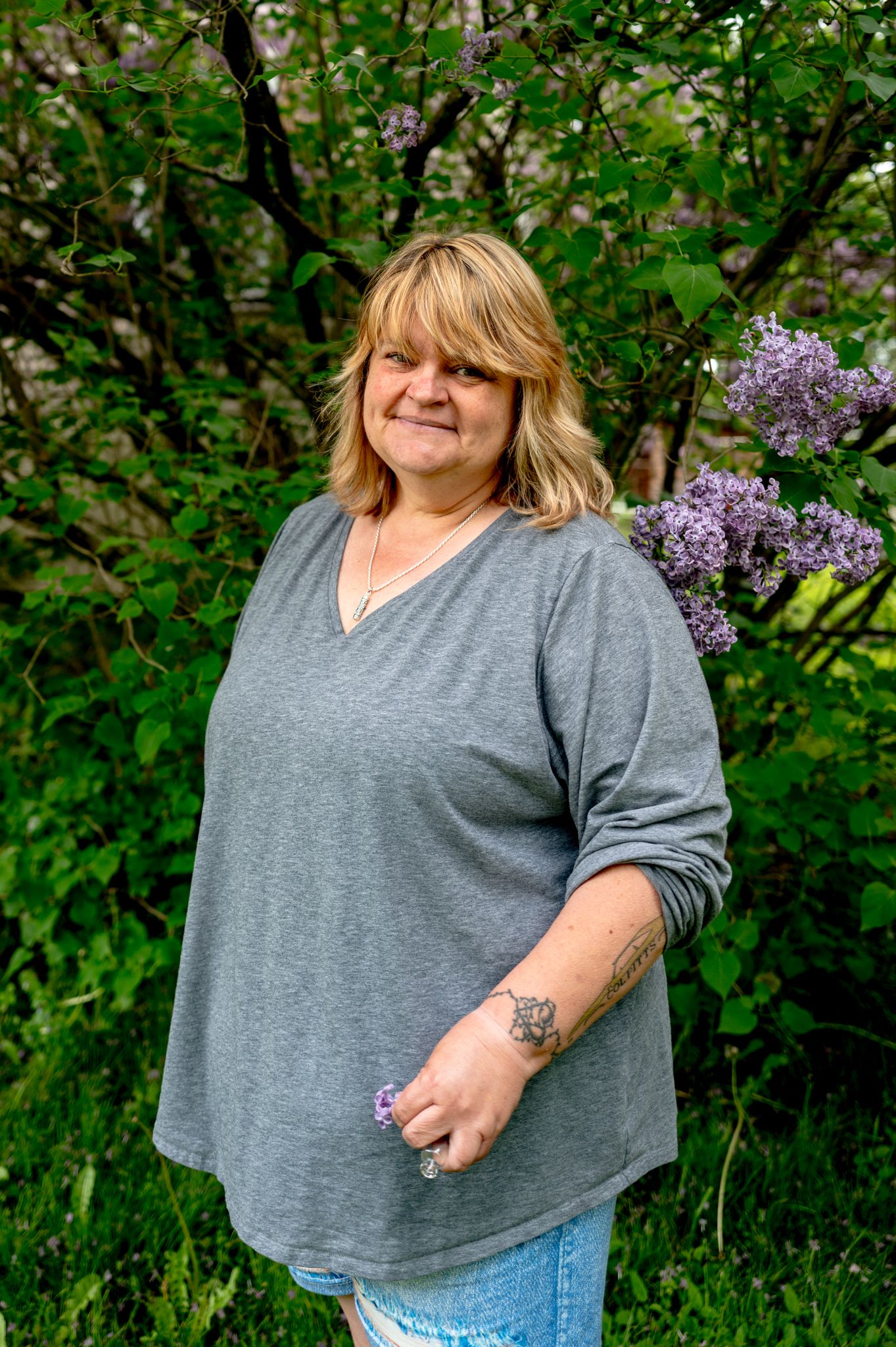 Kim King was clipping flowers in her yard. I introduced myself, complimenting her lilacs. We chatted about her grandfather, who’d planted the lilac bush 14 years ago; she had a portrait of him tattooed on her calf.