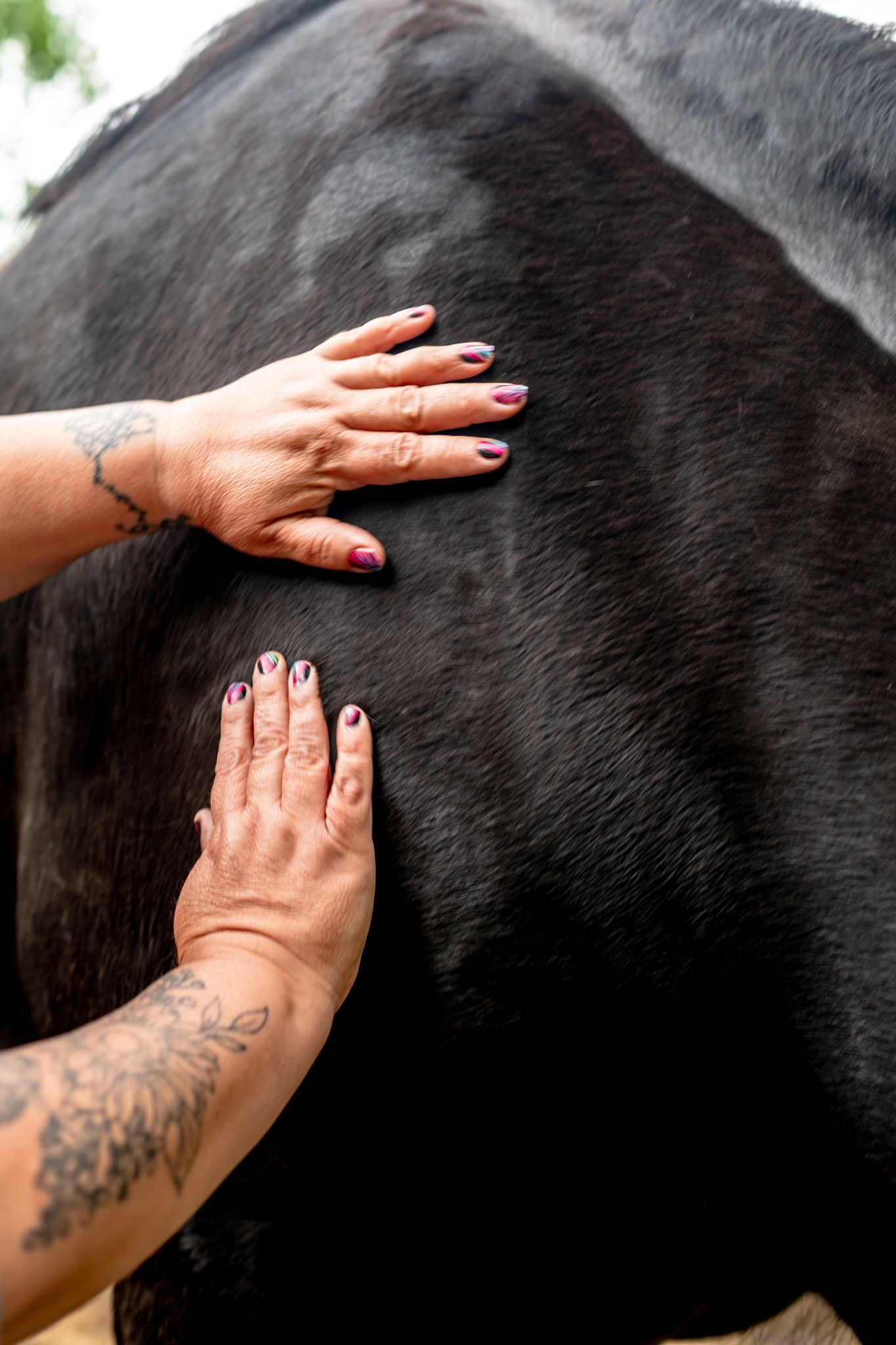 And she had a horse. A jet black, ultra-large workhorse named Fiona. Macayla had rehabbed her, starting 10 years ago. Now Fiona lives in Kim’s backyard.